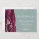 A borda esquerda deste elegante convite de casamento moderno apresenta uma corda d'água borrifada com borda cortada com falso brilho prateado. O texto personalizável combina letras de mão, placas de impressão e fontes itálicas em branco sobre um fundo verde sábio. O lado inverso apresenta um design de burgundy e agate prateado.