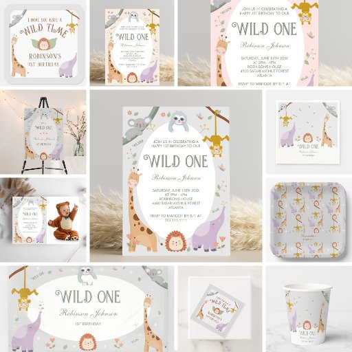 Convites Moderno Cumpleaños 1º Selvagem Fofo Safari Animais