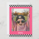 Este divertido segundo convite de aniversário tem um penhasco de óculos de sol multicolorido e uma fronteira de stripe de corrida. A parte de trás exclusiva do convite tem uma borda cor-de-rosa e faixa de corrida correspondente à foto do seu filho.