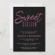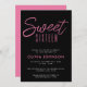 Convite de aniversário moderno, contemporâneo, baseado na tipografia e faixa de papelaria em preto clássico, preto e rosa. Personalize com seus próprios detalhes de evento. Itens correspondentes disponíveis. Entre em contato comigo para obter ajuda com outras solicitações de personalização e especiais. © Zoe Chapman Design