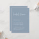 Esses convites de chá de panela elegantes, poeirentos, azuis e brancos são simples e minimalistas, mas muito na moda devido ao moderno roteiro manuscrito e ao layout limpo.