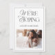 Nosso melhor anúncio de elopemento + convite de celebração recebe uma atualização elegante! Elegante Moderno Estamos Eloping Reception Invitation - uma design de anúncio de casamento branco e preto limpa, simples e simples, que permite que seus amigos e parentes saibam que você vai se casar (fugir de fato!), mas que você se importa o suficiente com eles para compartilhar uma celebração com eles quando você voltar. Este design mostra 2 de suas fotos de noivado favoritas. A frente do convite para a recepção de casamento de posto apresenta 'Estamos Eloping' em uma magnífica e moderna fonte mista de tipografia, seguida de seus nomes, e sua foto de noivado abaixo, que são facilmente personalizadas com esta design de modelo. A parte de trás do cartão apresenta sua segunda foto de noivado, seguida dos detalhes do seu anúncio de casamento, tão facilmente personalizado quanto as informações de recepção abaixo. Um design chic, sofisticado para a noiva na moda. Entre em contato com o designer para produtos correspondentes. Copyright Anastasia Surridge, todos os direitos reservados.