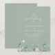 Um convite de casamento moderno com design simples, a aquarela eucalipto verde acentua a caligrafia elegante e a cor do sábio.