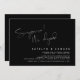 Anuncie e partilhe a sua alegria para sempre em estilo com o nosso moderno tema design (Surpresa! Eloped) cartão de convite para celebração de elopemento de casamento, em preto e branco. É ideal para casais que decidiram celebrar o seu melhor dia. Com seu design sofisticado, mas lúdico, este convite certamente define o tom de um evento inesquecível. O convite apresenta um tema de design de roteiro moderno e minimalista, acrescentando um toque de elegância do eterno à sua celebração. Projetado por TeeshaDerrick