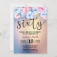 Belo 60º Convite de Aniversário Moderno. Design de fundo de aquarela com brilho dourado e elementos florais a rosa e azul.