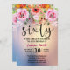 60º Convite de Aniversário moderno. Design de elementos de fundo azul, cor-de-rosa cintilante com brilho e elementos florais. Clique em personalizar mais para editar fonte/ cor/ estilo etc.