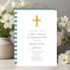 Convites Moderno Green Stripes Cross Boy First Communes