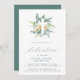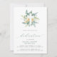 Um novo convite moderno para a Dedicação do Bebê com uma cruz branca sobre folhas de aquarela e fontes de script