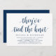 Cartão de convite temático com fonte Script Azul Navy Moderno Limpo Rústico (com título do cartão: eles amarraram o nó). É perfeito para o seu casamento furtivo / festa de celebração pós-casamento. Adicione seus detalhes em fonte / letra preta correspondente.