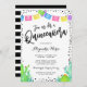 Esta colorida fiesta mexicana Quinceañera apresenta cacto aqucolor, papel picado e uma moderna fonte de caligrafia. As riscas pretas arrojadas e a borda de confetti fazem disso uma escolha única para o seu partido. Use os campos de modelo on-line para personalizar seu evento.