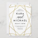 Este convite de casamento na moda apresenta um falho ouro, design geométrico num fundo branco agudo.