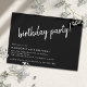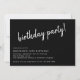 Convites de festas de aniversário casuais e bonitos com texto de título "festa de aniversário!" em uma fonte de script. Texto branco sobre um fundo preto contrastante. Pode ser mudado para qualquer idade.
