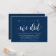 Cartão de convite temático Moderno Rústico, Azul-Marinho (com título do cartão: oh sim, nós fizemos). É perfeito para o seu casamento / festa de celebração pós-casamento. Adicione seus detalhes em fonte / letra preta correspondente.