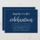 Cartão de convite temático Moderno Rústico, Azul-Marinho Script (com título do cartão: Celebração Feliz para Sempre). É perfeito para o seu casamento íntimo / festa de celebração pós-casamento. Adicione seus detalhes em fonte / letra preta correspondente.