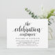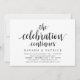 Cartão de convite temático com fonte preta moderna e limpa, rústico (com título do cartão: a celebração continua). É perfeito para o seu casamento fuga romântica recepção / festa de celebração pós-casamento. Adicione seus detalhes na fonte / letra preta correspondente.