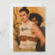 Com uma combinação de fontes serif e script, este convite "Salvar a data" apresenta uma foto na casal abaixo do texto preto. A parte traseira da placa apresenta a mesma foto do casal (sem o texto).