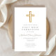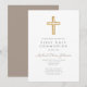 Convites Moderno Taupe Cruza a Primeira Comunhão Religiosa