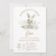 Moderno Um Coelhinho Está Virando Um Convite Para Um primeiro aniversario Simples, mas doce coelhinho, com o primeiro convite de aniversário com um coelho branco, um pouco verde e pequenas flores brancas. Este coelho está fazendo um convite de aniversário que também pode ser usado para uma idade diferente.