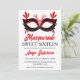 Crie uma noite de mistério e intriga com nossos elegantes convites de aniversário negros. Estes designs modernos apresentam uma tipografia sofisticada e detalhes intrincados da máscara de mascarada, perfeitos para uma glamourosa e inesquecível celebração do Sweet 16. Personalize com suas cores favoritas e adicione um toque de talento pessoal.