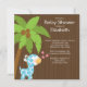 Comece o chá de fraldas do seu filho com o convite de chá de fraldas das girafas azuis. Nosso convite para girafa azul e branca de safari na selva apresenta uma doce girafa de bebê com palmeira e borboletas em um fundo castanho moderno. A parte de trás dos nossos convites para o chá de bebê tem uma bolinhas azul coordenada de volta e é o convite perfeito para um chá de fraldas de criança. Visite-nos em www.celebrateitinvites.com para encontrar girafa correspondente. Obrigado cartões de nota, selos postais e autocolantes. ©Zenware Designs
