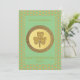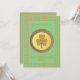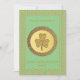 Este maravilhoso convite de festas do Dia de São Patrício mostra uma imagem gráfica de uma moeda de ouro com dois tons de ouro. O círculo externo tem uma textura áspera. Dentro, o círculo interno da moeda é uma pedra-do-ouro texturizada composta por três folhas e um caule. Há texto personalizado no verso para que você possa incluir os detalhes de sua festa.