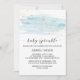 Este cartão de convite para bebê brilhante azul e dourado, azul-d-água, é perfeito para um chá elegante para bebês. O design luxuoso apresenta uma textura azul-clara de aquarela com um salto de belo brilho de ouro falso e uma fonte moderna de escrita de caligrafia. Nota: Este design não apresenta brilho de ouro real. É um gráfico de alta qualidade feito para parecer um brilho dourado.