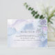 Recepção de casamento | buquê Rustic Watercolor de flores púrpuras e poeirentas, pintadas vagamente sobre fundo de cor aquosa - tons de azul e púrpura -, todas sobre fundo azul e lilás de cor aquática