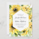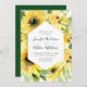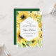 Nossos elegantes convites para casamento de Watercolor Sunflower mostram seus detalhes de casamento enquadrados por girassóis amarelos, folhas verdes e folhagem exuberantes. O convite inverte-se para um fundo verde sólido.