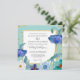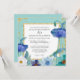 Convites Moldura Dourada Floral Azul-Aqua e Branco