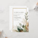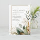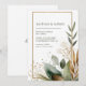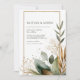 Convide seus convidados com um senso de elegância natural e discreta usando este convite de casamento rústico minimalista. O design é ancorado por um fundo branco vertical limpo, maximizando a simplicidade e o foco nos elementos naturais. Uma moldura retangular fina e brilhante em falso dourado fornece um limite chique e elegante para o seu texto. O destaque do design é a folhagem em aquarela, concentrada principalmente no canto inferior e se estendendo por uma das laterais. A folhagem apresenta uma paleta de cores linda e suave, variando de folhas em verde sage poeirento e tons profundos de eucalipto até acentos quentes em terracota e laranja queimado, sugerindo um tema de outono ou boêmio. Delicados ramos botânicos dourados e pontos de respingos de tinta verde pintados à mão adicionam textura e brilho à composição natural. Este estilo de jardim boêmio é perfeito para casais que planejam uma cerimônia ao ar livre, um casamento em celeiro rústico ou qualquer evento que abrace a sofisticação terrosa e orgânica. Este design é perfeito para convites de casamento rústicos, anúncios de chá de noiva boêmio, convites para eventos de outono terrosos ou papelaria para jantar de ensaio elegante. Este lindo design também pode ser facilmente adaptado para uso como anún