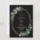 Este quadro de ouro verde preto simples nós fazemos design de convite para casamento apresenta uma mistura fácil e combina estilos coordenadores em preto e branco com elementos verdes delicados acrescentando um florescente gracioso em torno de uma simples tipografia sofisticada e um lindo roteiro de caligrafia. A aquarela eucalipto e outras folhas botânicas se espalham lindamente, com a esmeralda escura esmaecendo em um efeito sombrio em verde-menta claro - para adicionar apenas um toque clássico de natureza rústica a um pano de fundo contemporâneo neutro. Esta coleção maravilhosa criaria perfeitamente um ar de elegância polida para o seu casamento formal ou casual de sonho ou outro evento especial. Tal como acontece com todos os nossos designs, se tiverem perguntas ou pedidos especiais, por favor contactem-nos.