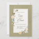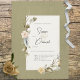 Este lindo design delicado é elegante, porém simples. Caracteriza-se por uma delicada moldura dupla com flores boho secas em tons suaves de rosa pêssego, creme, bege e verde com uma moldura verde sage desgastada em volta. O fundo é um verde sage desgastado complementar. Este design faz parte da coleção Dried Boho Floral Frame Green Wedding Suite criada pela Simply Farmhouse Press.