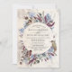 Uma estrutura floral russa com pássaros, um intrincado e belamente rústico design. As flores de aquarela entrelaçam-se em torno de uma estrutura circular. Um estudo detalhado de pássaros gentilmente percorrendo o texto elegante. Para um casamento elegante e rústico. Tons de ameixa, azul empoeirado, e verdes de esmeralda escura a sábio macio. Para se adequar a um casamento rústico no verão, mas combinado com os envelopes e acessórios certos, também poderia servir a um casamento outono ou inverno sazonal ou de inverno.