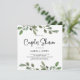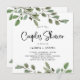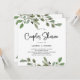 Estes adoráveis convites para chás de casamento minimalistas apresentam folhas verdes botânicas de cor aquática, simples, sobre fundo branco e limpo. A tipografia da escrita preto de tendências diz "casal chá" e adiciona um toque extra ao estilo moderno.