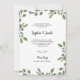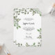 Estes adoráveis e mínimos convites de festas de renovação de votos de casamento ou de aniversário apresentam folhas verdes, simples e aquáticas, em um fundo branco e limpo. Texto serif moderno misturado à tipografia da escrita de tendências adiciona um novo olhar para tornar este convite perfeito para o estilo botânico rústico, minimalista ou qualquer estilo elegante ao ar livre.