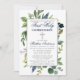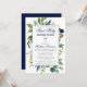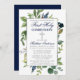Elegante Aquarela Verde Botânico Primeiro Convite à Santa Comunhão inclui sotaques azuis. Moldura prateada. Silver Cross. Marinho Azul Para Trás.