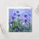 Cartão com o azeite de Claude Monet a pintar as irrises liláticas (1914-1917). Lindas flores roxas num mar de verde. Paisagem serena. Um presente de Monet excelente para fãs do impressionismo e da arte francesa.