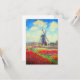 Convite com a pintura de Claude Monet em flores e moinhos de vento. Lindos e coloridos campos de tulipas vermelhas, cor-de-rosa e amarelas ao lado de um moinho de vento e casa na Holanda. Um presente de Monet excelente para fãs do impressionismo e da arte francesa.