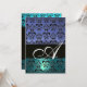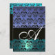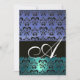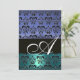 Convites MONOGRAMA AZUL NEGRO DE DAMASK, branco brilhante