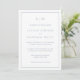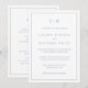 Convite de casamento simples e completo, apresentando um design moderno e elegante com o seu monograma de duas letras no topo e os seus detalhes cercados por uma fina borda. Todos os elementos do design são azul empoeirado sobre um fundo branco e podem ser alterados para qualquer cor desejada na ferramenta de edição de design. O verso contém todos os detalhes do casamento, eliminando a necessidade de um cartão de inserção separado, tornando este um conjunto de convites de casamento econômico. Um design sofisticado e elegante, ótimo para casais minimalistas.