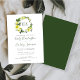 Esta design de casamento apresenta as iniciais da noiva e do monograma do noivo em verde moldadas por uma faixa de aquarela de flores amarelas da primavera e folhagem verde. Personalize o texto com os nomes dos casais em um guião elegante de escrita manual verde e os detalhes do casamento em cinzas de carvão. O reverso é uma fina forma de verde.
