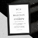 Convite clássico de casamento clássico preto e branco com design elegante de tipografia. Personalize com todo o seu monograma e detalhes para um convite de casamento personalizado.