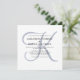 Estes convites para casamento de na moda exibem seu monograma em texto grande e moderno colorido em azul empoeirado em fundo branco. Uma simples e elegante busca pelo seu casamento moderno.