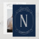 Este convite de save the date minimalista e elegante é a maneira perfeita de anunciar o seu casamento. A frente do cartão apresenta um belo brasão de monograma com um laço no topo, e o verso do cartão pode ser personalizado com sua foto e detalhes do casamento. Este convite certamente irá impressionar seus convidados e deixá-los ansiosos para o grande dia.