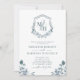 Convites Monograma Crest Código QR Dusty Blue Floral Casame