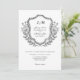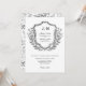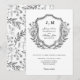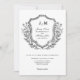 Monograma elegante com convite para casamento de design de crista floral. Apresenta um design de arte de linhagem floral e folhada em um tema clássico preto e branco. Pronto para personalizar com os detalhes do seu dia especial. Por favor, navegue no Black White Monograma e Floral Crest Wedding Suite para itens correspondentes.