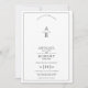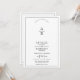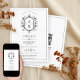 Monograma da crista floral de vintagem branca e preto e convite para casamento de fronteira com código QR. Elegante e inspirado em vintage, este convite de casamento apresenta uma crista floral meticulosamente trabalhada em preto. A crista apresenta um monograma personalizado das iniciais do casal. Seus nomes são apresentados abaixo na tipografia negra, acrescentando ao sentimento sofisticado e romântico do convite. Uma delicada borda negra arma o design. Para facilitar o RSVP e o acesso aos detalhes do casamento, um código QR é incluído no verso.
