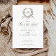 Monograma da Terra de Oak Oak Elegante Salve o Convite de Casamento de Data. Convite De Casamento Tradicional. O Monograma de Casamento de Olive Leaf Salva o Cartão de Data. Vintage Sage Green Botanic Crest Salvar a Data Convite