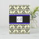 Convites MONOGRAMA DAMASCO,preto e branco,azul metálico dou