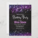 O convite à brilho preto roxo e bonito para qualquer idade com faíscas legal de brilho.Para torná-lo mais especial você irá personalizá-lo com suas próprias informações com lindas fontes de monograma. NOTA: Estes são gráficos impressos - sem brilho real, joias ou peças levantadas.